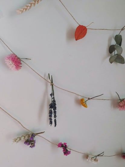 In de doos vind je 2 meter touw, een selectie droogbloemen van het veld en een stappenplan.